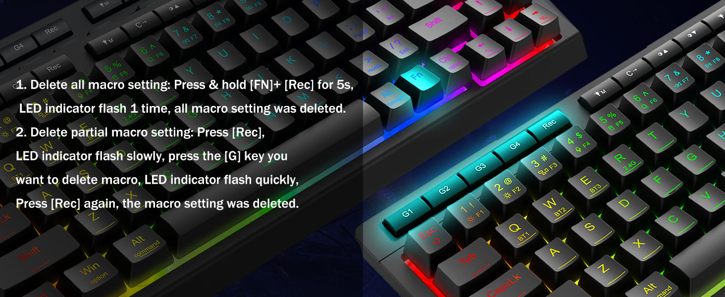 カスタマイズ可能なマクロ、簡単な制御 -4 つのオンボード マクロ キー (G1 ~ G4) を即座にプログラムできます。ソフトウェアは必要ありません。ゲーム用の複雑なコンボ、生産性向上のためのショートカット、またはメディア コマンドを記録します。ワークフローを数秒で再定義します。ソフトウェアを使用して、機能をカスタマイズしたり、マクロを作成したり、RGB ライトを調整したり、ショートカットを設定したりすることもできます。ソフトウェアリンク: bit.ly/K524RGB-PRODriver