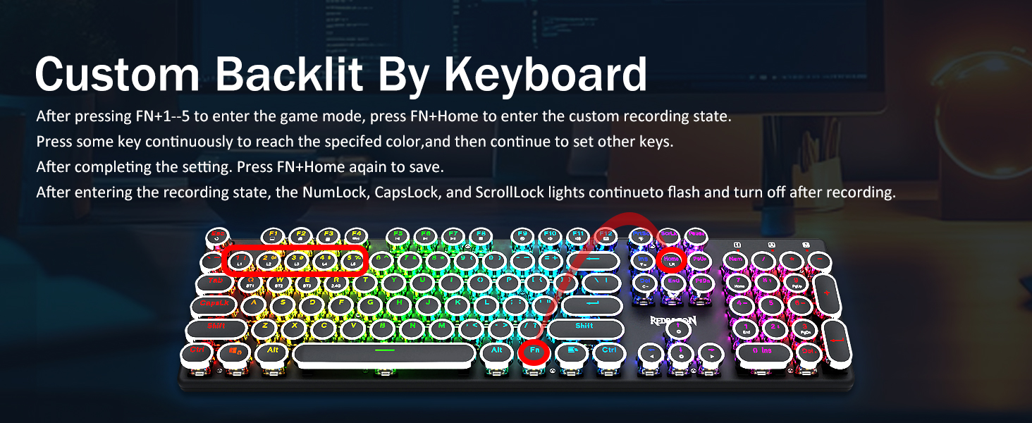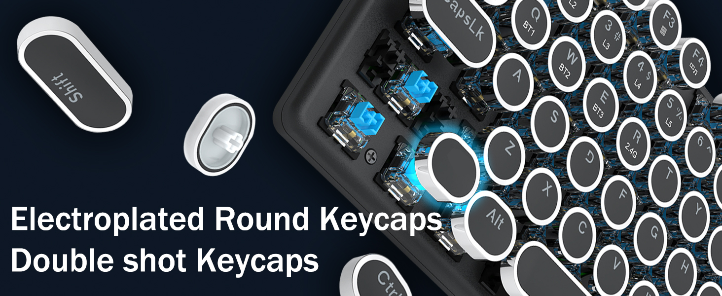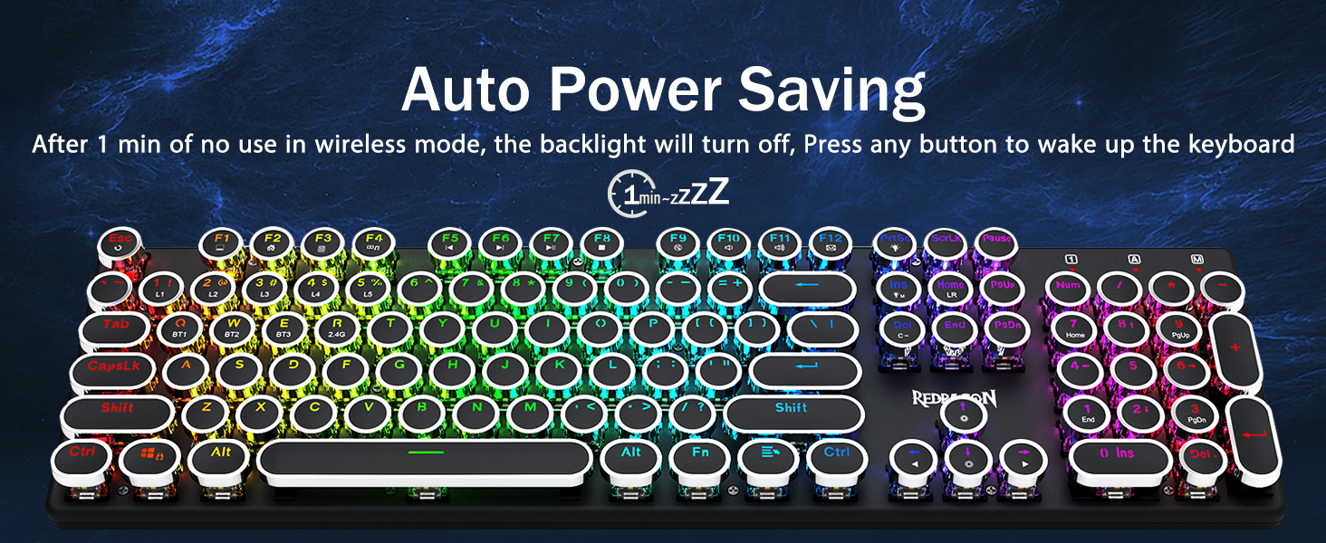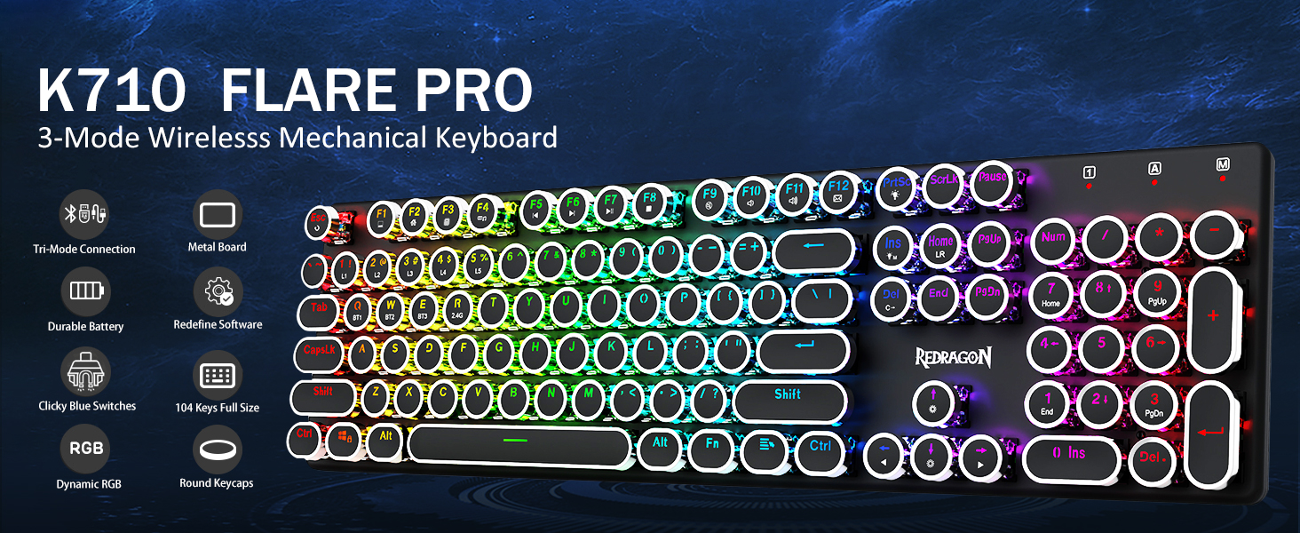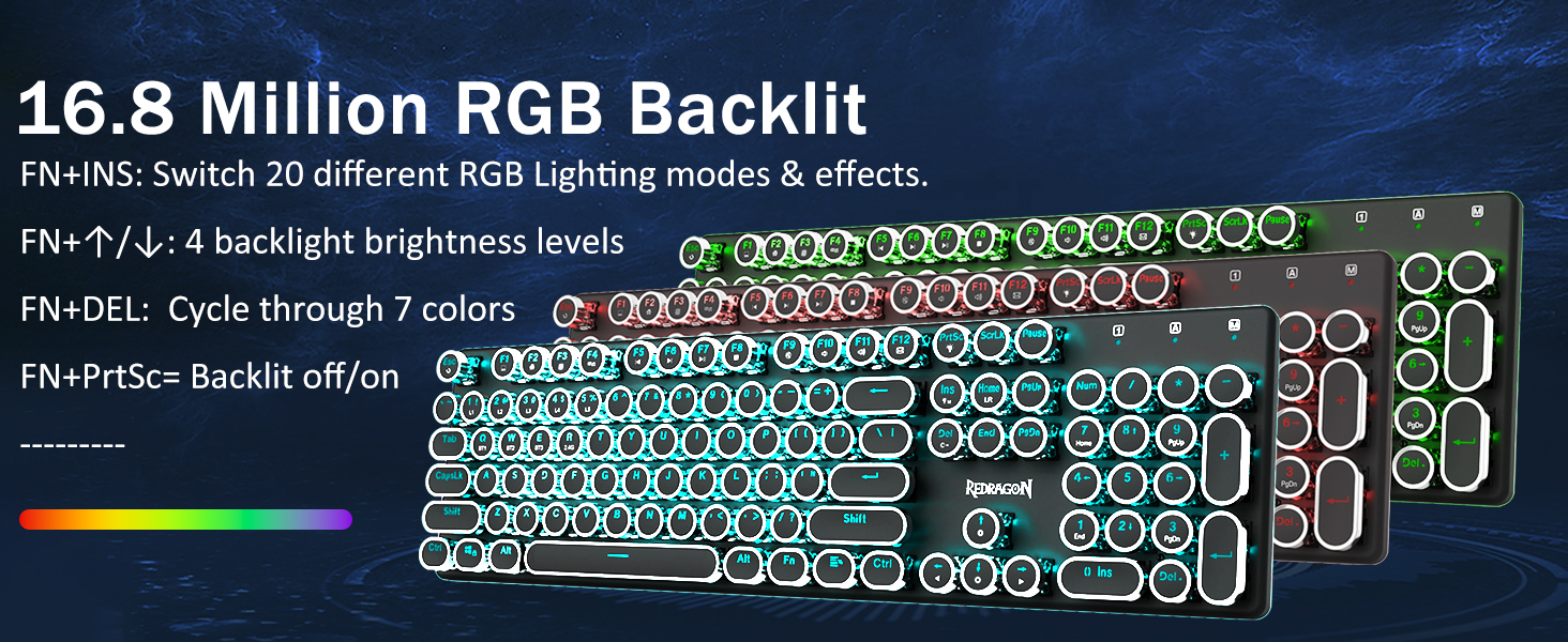 𝗥𝗲𝘁𝗿𝗼𝗧𝘆𝗽𝗲𝘄𝗿𝗶𝘁𝗲𝗿 𝗠𝗲𝗰𝗵𝗮𝗻𝗶𝗰𝗮𝗹 𝗞𝗲𝘆𝘀 -Redragon メカニカルブルースイッチは、中程度の抵抗、可聴のクリックカチャカチャ音と触覚フィードバックを提供し、応答性が高く正確なゲーム環境とパフォーマンスを提供します。ビンテージのスチームパンク キーボードの丸いキーキャップはクラシックなタイプライターのように見え、快適なタイピング感と安定したクリック感をもたらします。