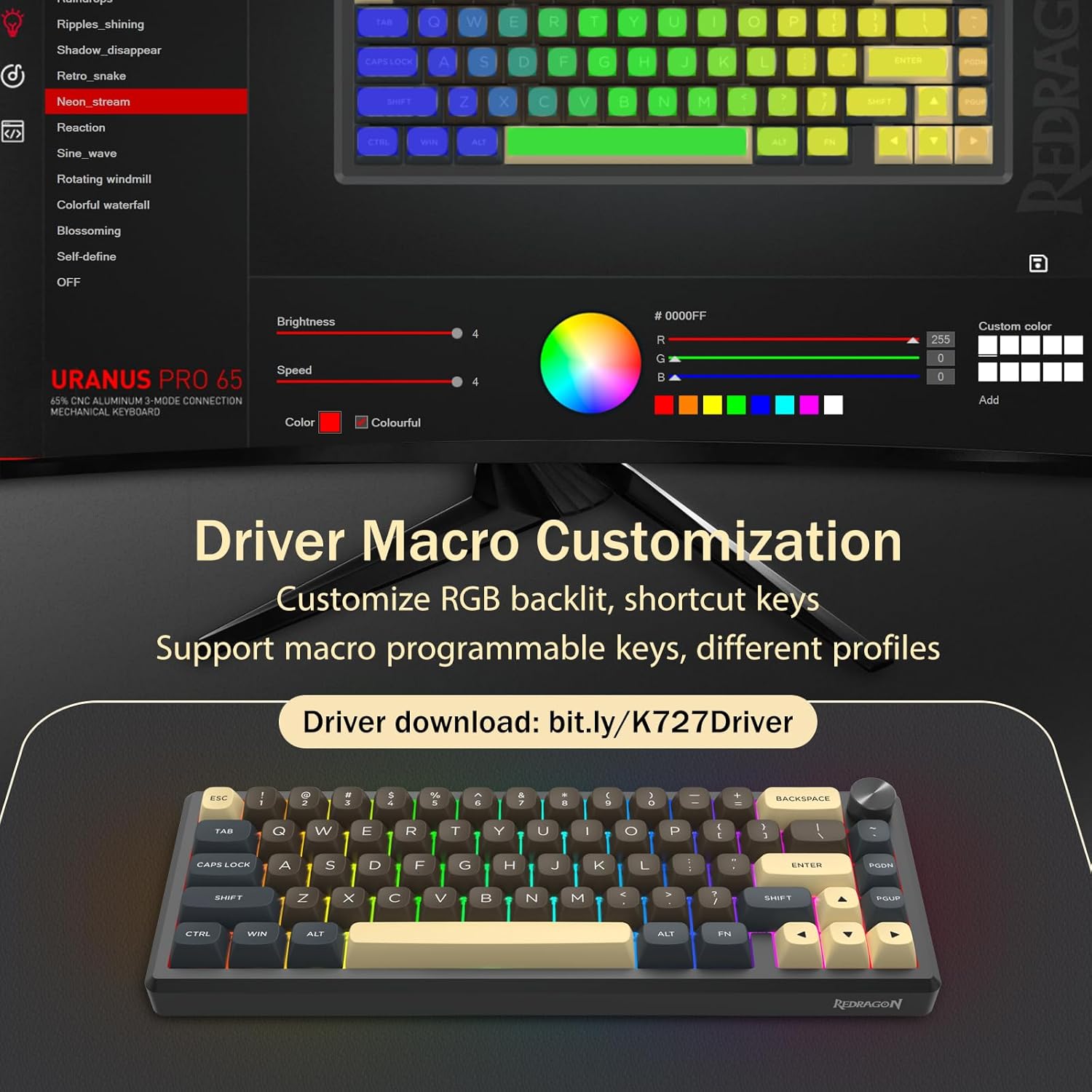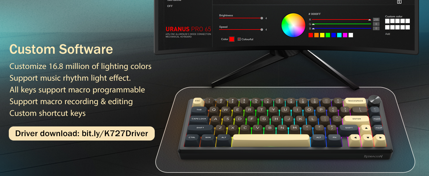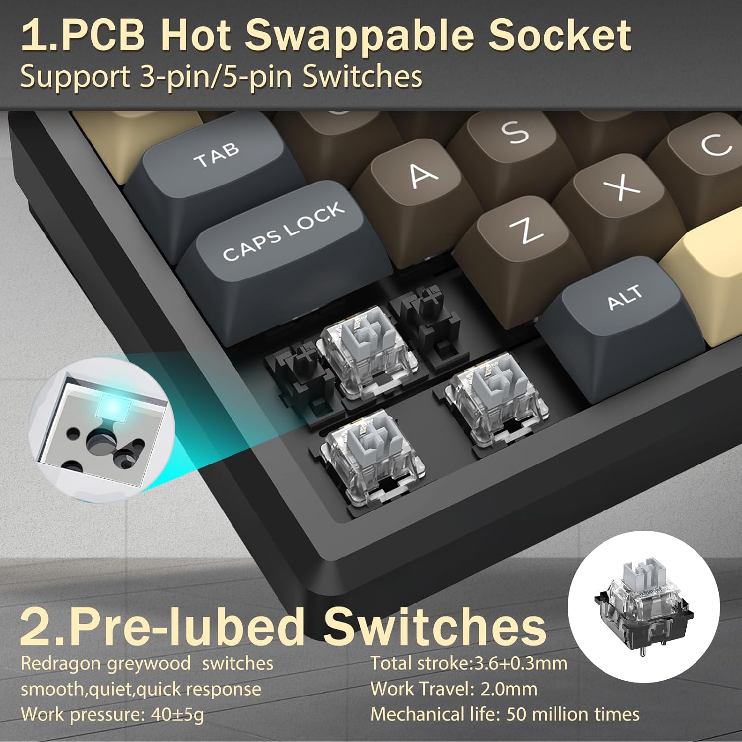 バランスのとれた機能と一貫したパフォーマンスを備えた黒の K727 60% ワイヤレス メカニカル ゲーミング キーボードは、ゲーム、生産性、日常のコンピューティングに効率的なソリューションを提供します。