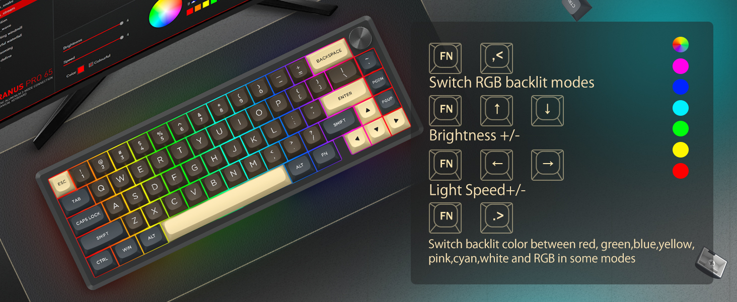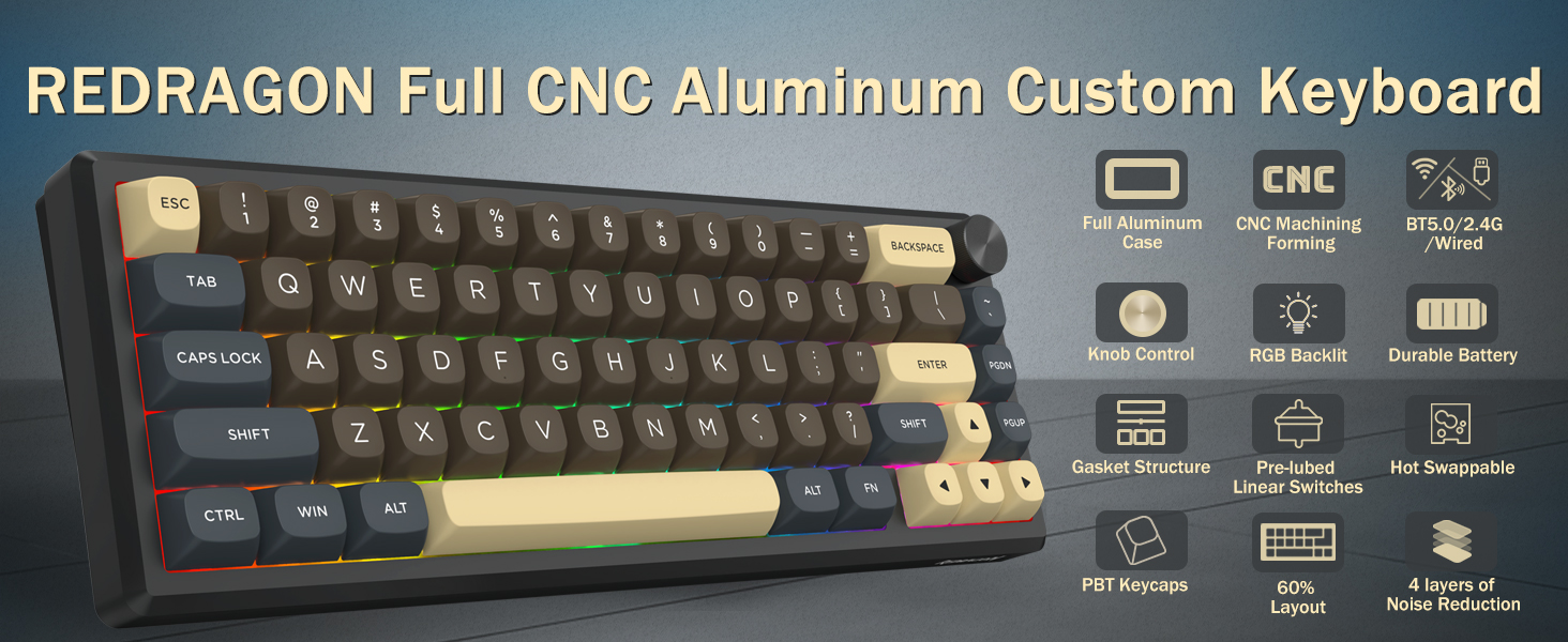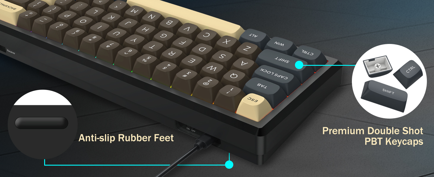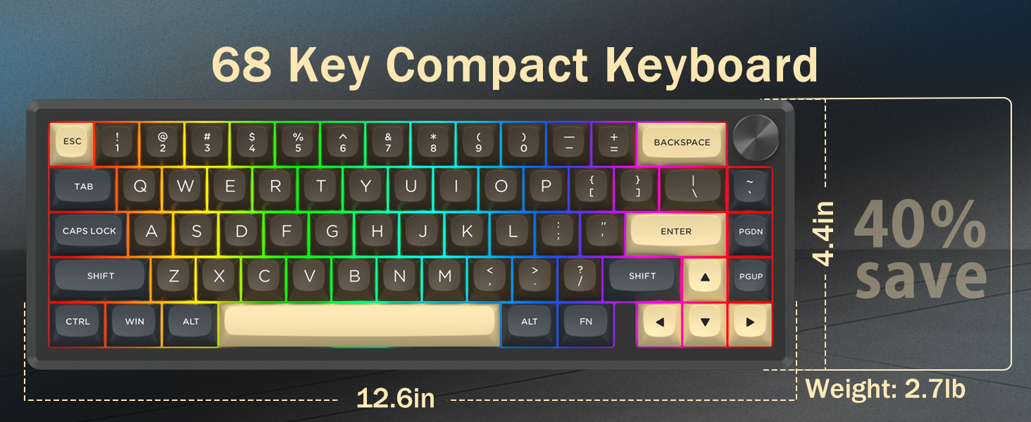 60% レイアウトのこのキーボードは、キーの組み合わせによるコア機能を維持しながら、不要なキーを削除しています。このデザインにより、デスクの混乱が軽減され、マウスを動かすためのスペースが増えるため、ゲーム環境と生産性環境の両方に適しています。