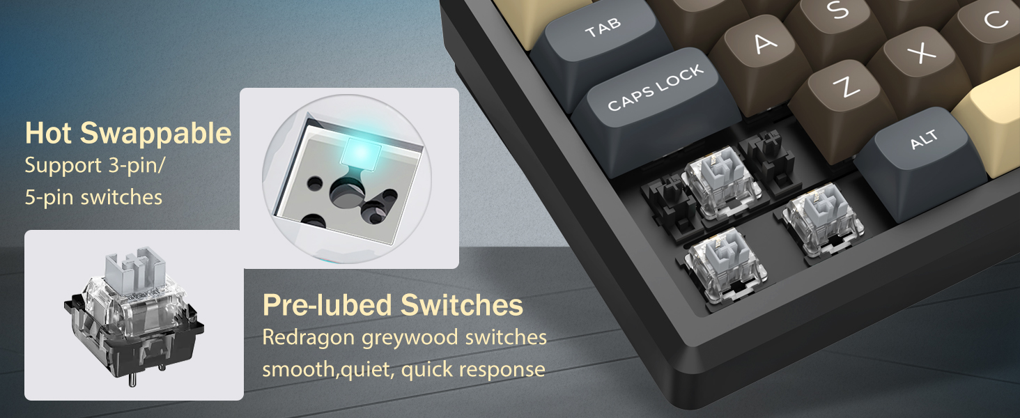 A: キーボードは両方のアプリケーション向けに設計されています。メカニカル スイッチはタイピングに一貫したフィードバックを提供し、低遅延によりゲーム向けの応答性の高いパフォーマンスを保証します。