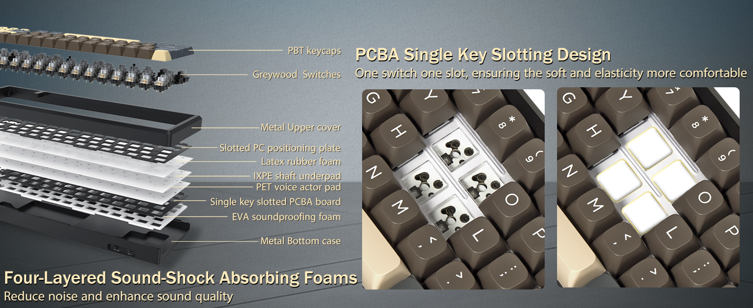 キーキャップは耐久性と一貫した質感を重視して設計されており、長期間にわたって快適なタイピング体験を維持できます。キーボード フレームは使用中の安定性を提供し、タイピングやゲーム セッション中の動きを軽減します。