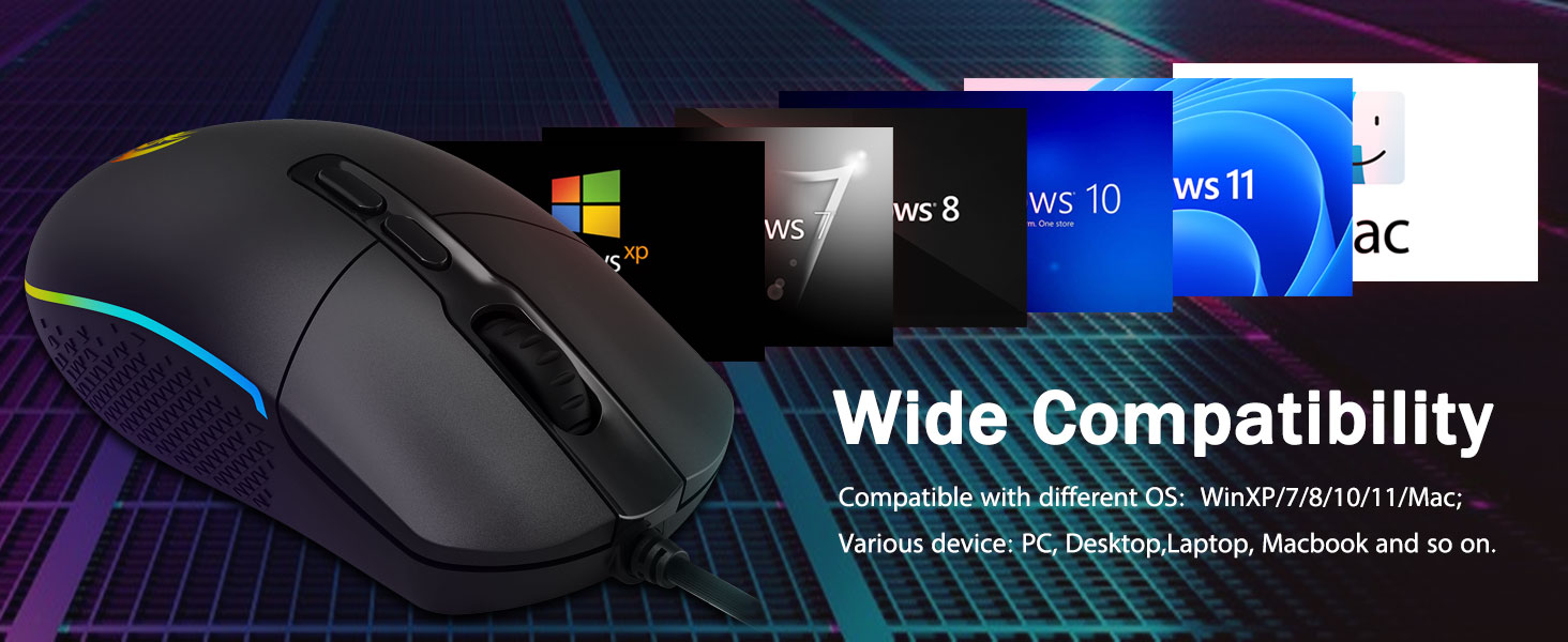 熱心なゲーマーの選択- 狙ったり、狙いを定めたり、斬ったり、攻撃したりする場合でも、プロ仕様のゲーミング マウスは最高の武器です。マウスはあなたの理想的なパートナーとなるでしょう。 Windows XP/Vista/Win7/Win8/Win10/ME/2000/Macなどと完全に互換性があります。
