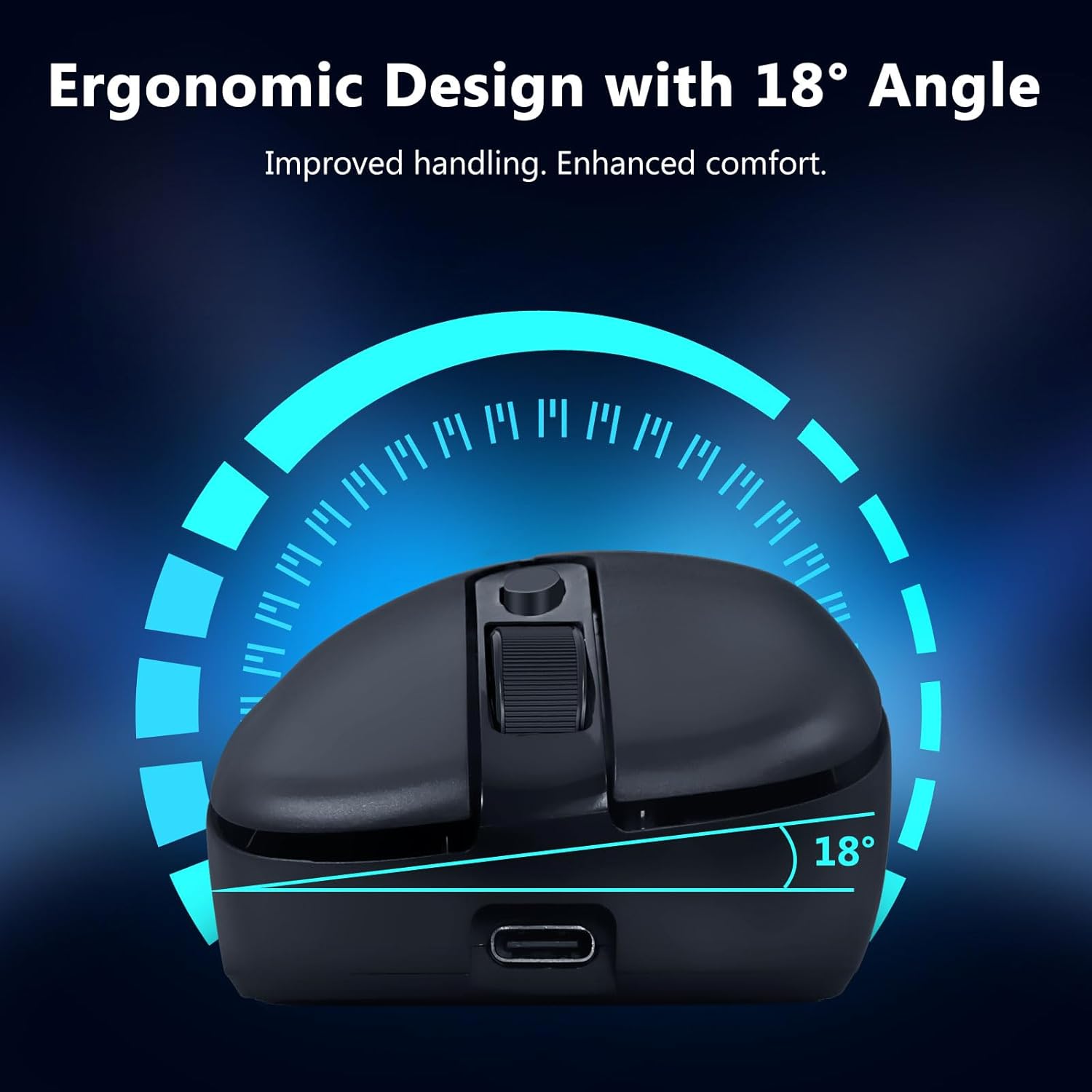 マウスは自然な手の位置をサポートする形状になっています。その表面は安定したグリップを提供し、高速かつ正確な動きの両方で正確なコントロールを可能にします。