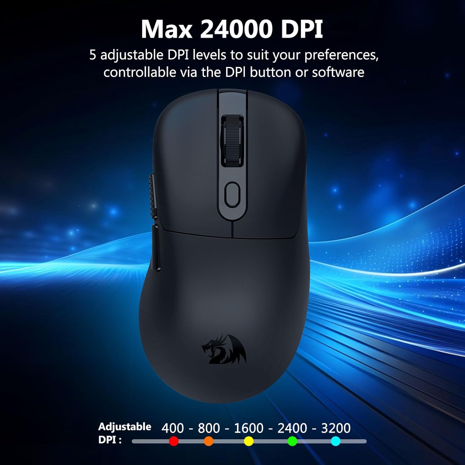 このマウスには、最大 24,000 DPI に達する高性能光学センサーが搭載されています。これにより、ユーザーは正確なカーソル制御から素早い画面ナビゲーションまで、さまざまなタスクの感度レベルを調整できます。