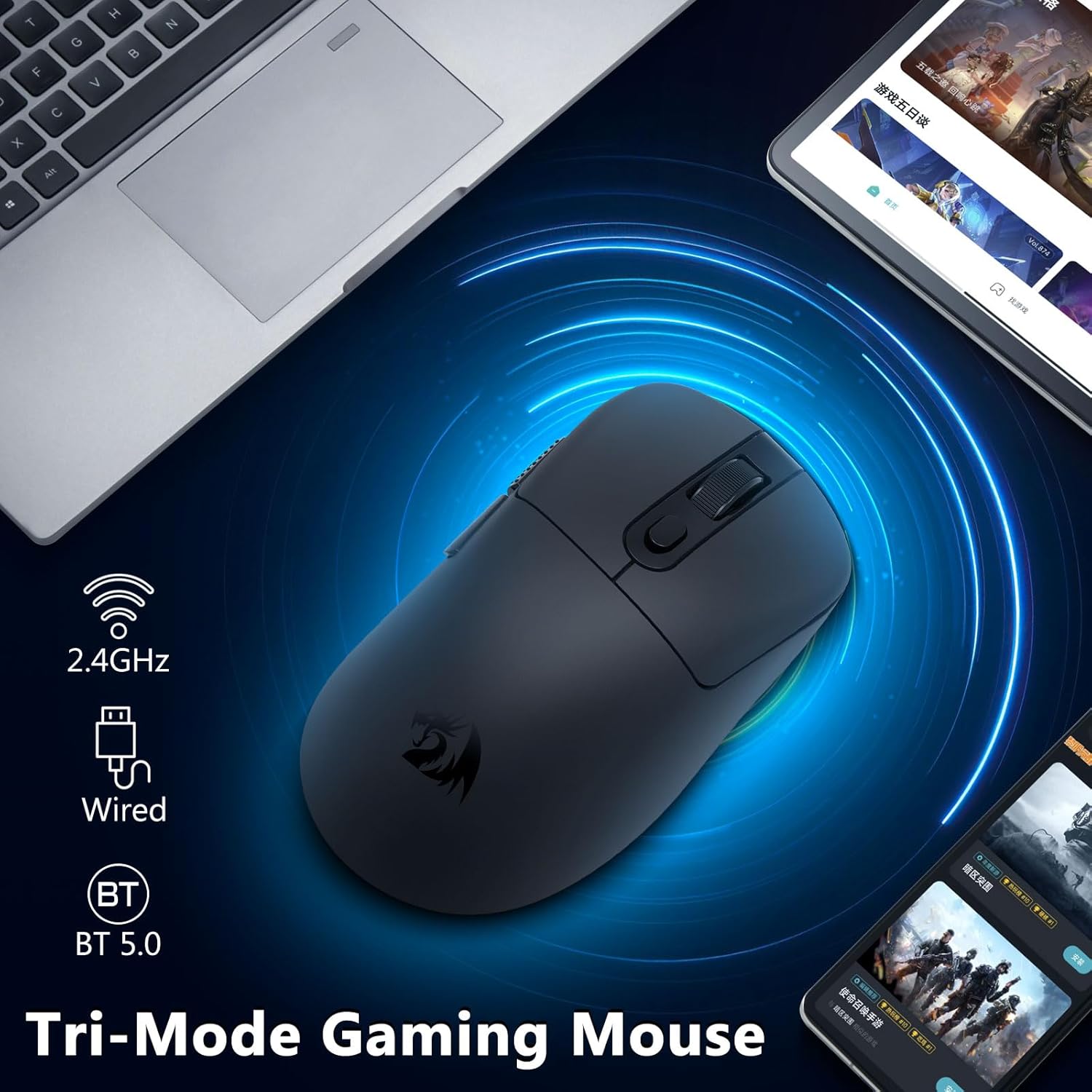 2.4GHz ワイヤレス モードは、安定した応答性の高い入力を保証し、遅延を軽減し、ペースの速いアクティビティでも一貫した制御を維持します。