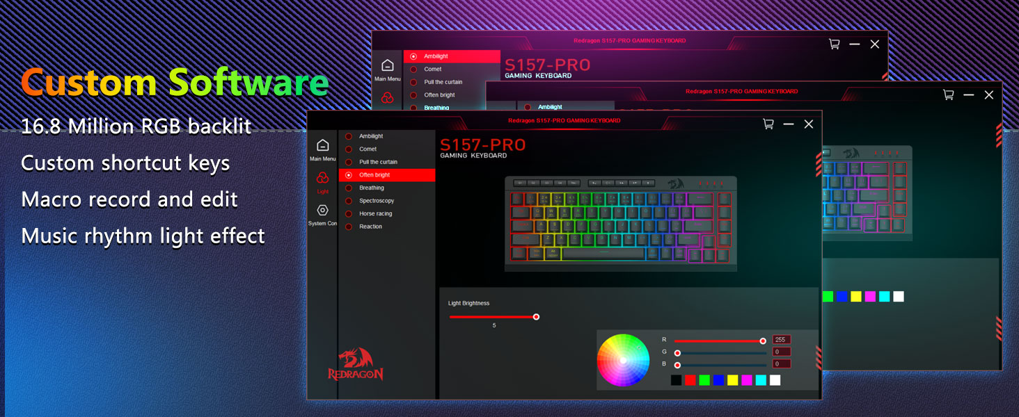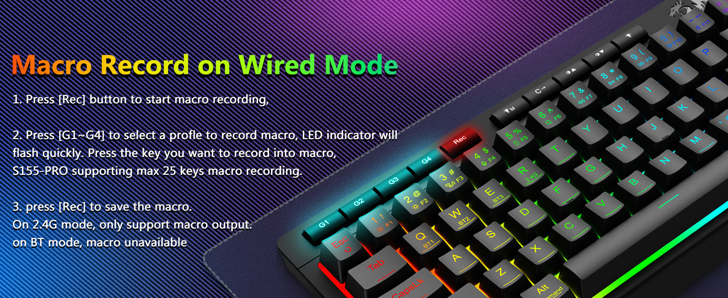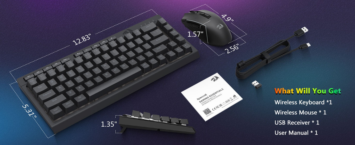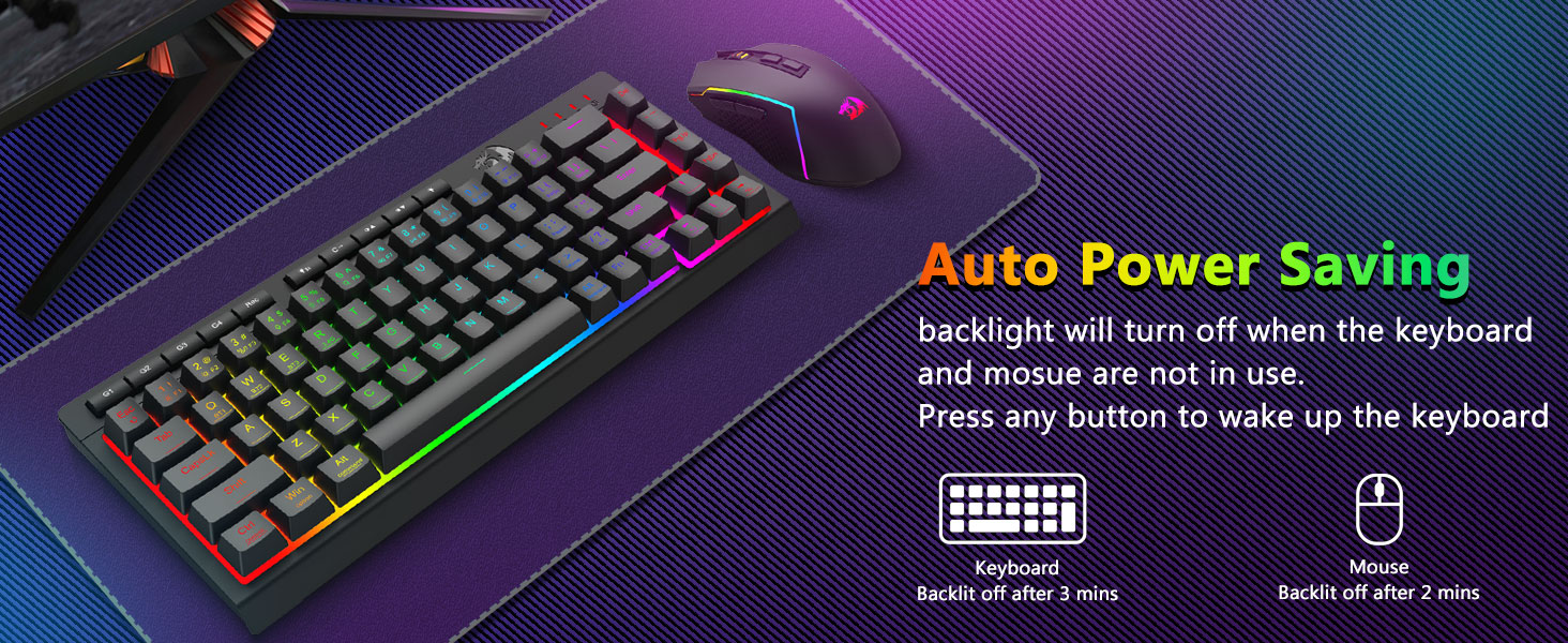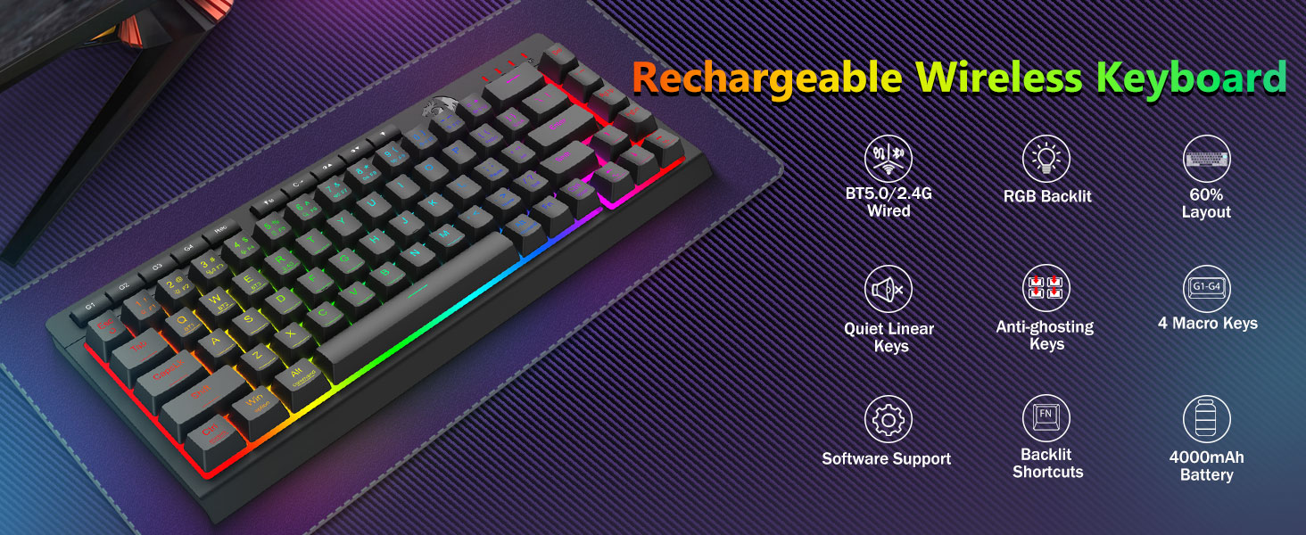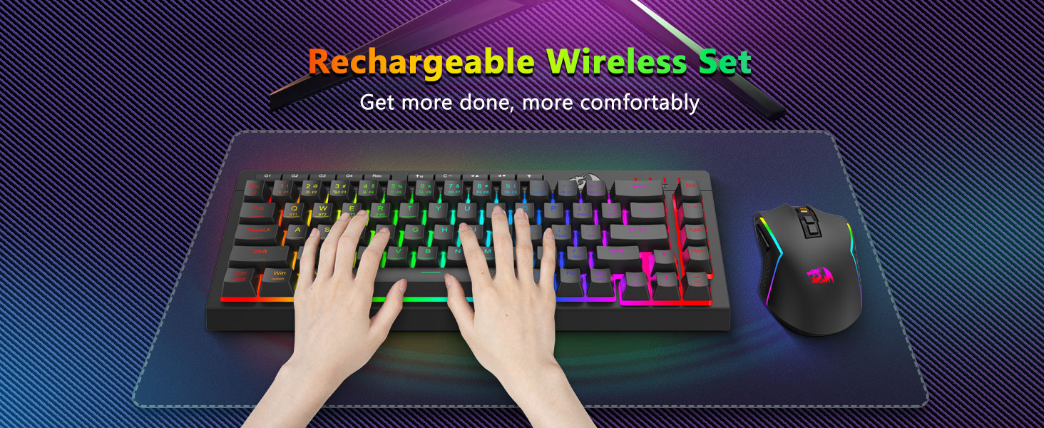 Redragon のブラック S157 ワイヤレス ゲーミング キーボードとマウスのコンボは、専門メーカー Chuangquan によって精巧に作られており、パフォーマンスとスタイルの両方でゲーム ステーションを向上させるように設計されています。キーボードは満足のいく触覚応答を提供し、激しいゲーム マラソンや長時間のタイピング セッションの両方に最適です。一方、マウスは調整可能な DPI 設定によりピンポイントの精度を保証し、優れたゲーム内コントロールを実現します。どちらのコンポーネントにも魅力的な RGB バックライトが装備されており、さまざまな色のスペクトルとダイナミックな効果でセットアップの雰囲気をカスタマイズできます。