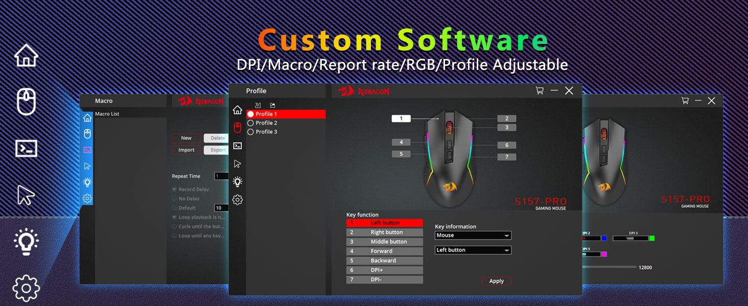 最大 12800 DPI 調整可能- 5 つのオンボード DPI レベルに対応しており、マウスの動きを各ピンポイント位置に登録できます。ソフトウェアを使用して 5 DPI レベルを自由に DIY できるため、ゲーマーはゲーム中に素早く切り替えることができます。