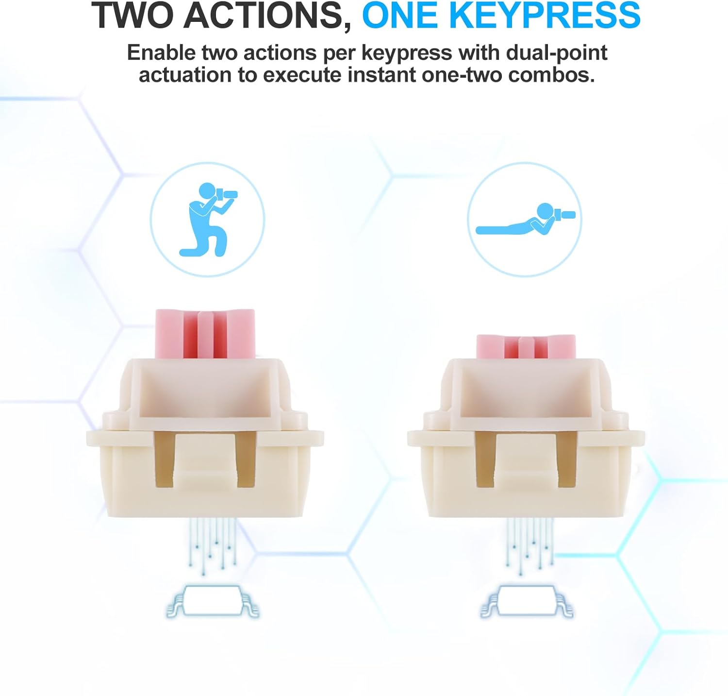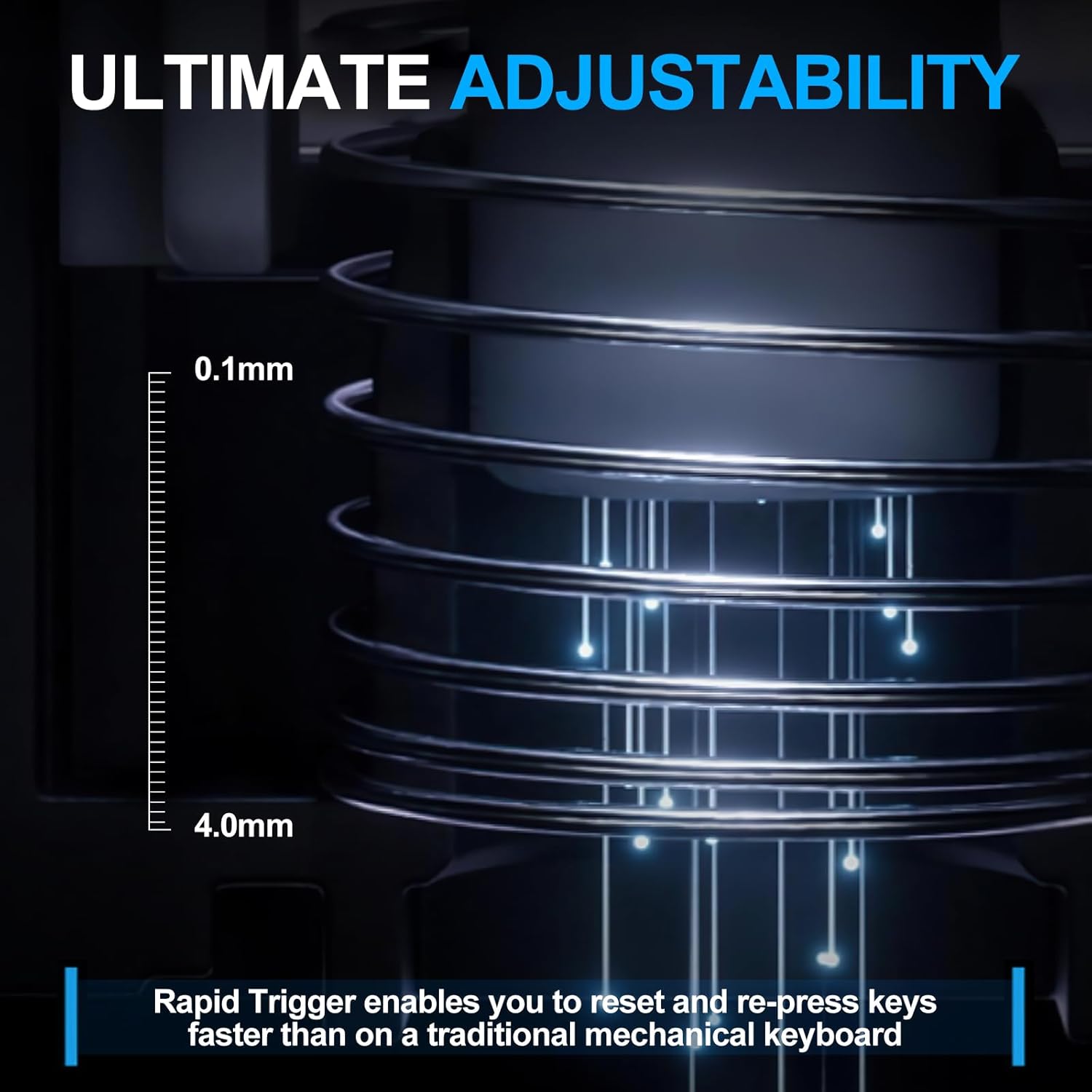 ラピッド トリガー機能により、固定されたリセット ポイントを待つことなく、キーを放したときに即座にリセットできます。これにより、より高速なキーストロークの繰り返しとより正確な制御が可能になり、特に FPS やリズムベースのゲームなどの競争力のあるゲーム シナリオで役立ちます。