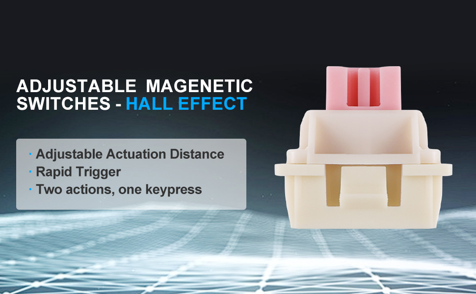 磁気スイッチはホール効果センサーを使用してキーの動きを検出し、調整可能な作動ポイントと一貫した入力認識を提供します。従来の機械式スイッチとは異なり、このテクノロジーは物理的な磨耗を軽減し、長期的な安定性を保証します。