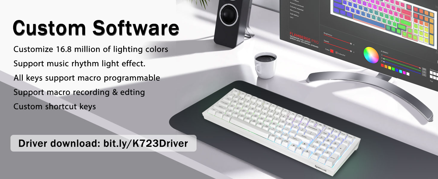 メカニカルゲーミングキーボード:K723 は、仕事にもゲームにも最適なプレミアム メカニカル キーボードです。 16 RGB 照明効果により、ゲームルームに素晴らしい雰囲気を加えます。キーはマクロの記録と編集を可能にするマクロカスタマイズをサポートし、キー機能と1,680万のライトカラーをカスタマイズし、ドライバーによるクールな音楽リズム照明効果をサポートします。 N キー ロールオーバー、キーボードは同時に複数のキーを押すことができ、非常にエキサイティングなリアルタイム ゲームに役立ちます。