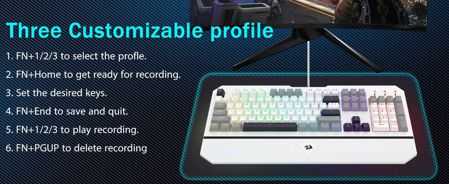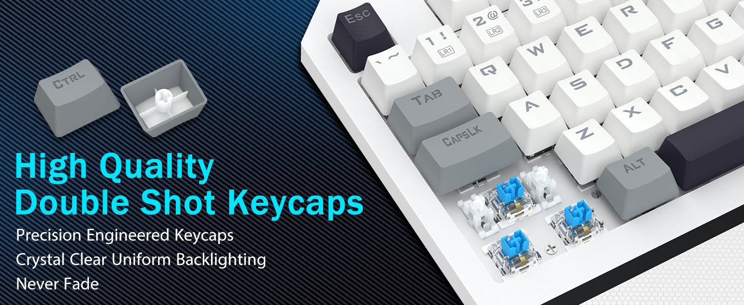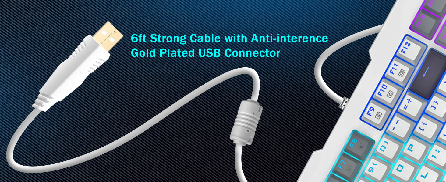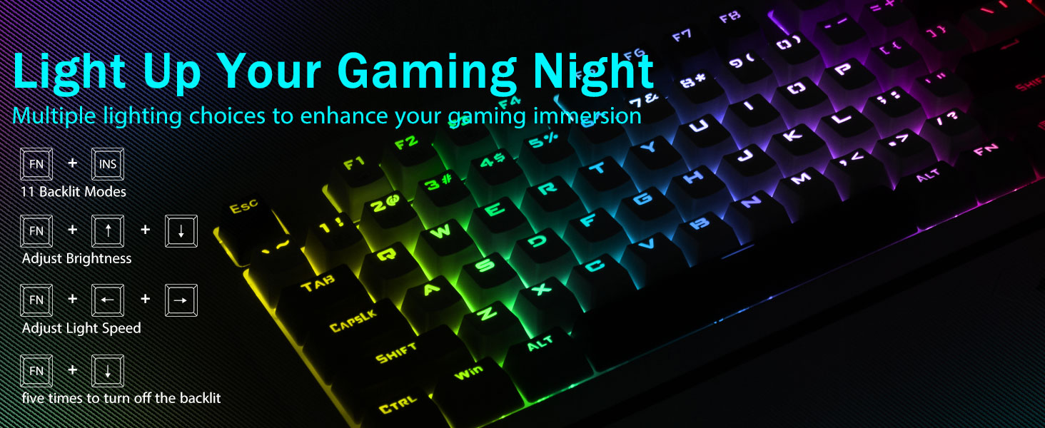 【没入感を実現するレインボーバックライトキーボード】11 のダイナミック バックライト モード、5 つの調整可能な速度と明るさのレベルでデスクトップを照らします。このキーボードはゲームのセットアップに革新をもたらし、特に暗い環境での気分と没入感を高めます。超耐久性のダブルインジェクション ABS キーキャップは、非常にクリアで均一なバックライトを保証し、暗闇でもタイピングの精度を向上させます。