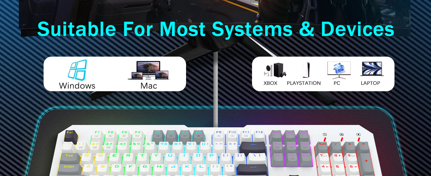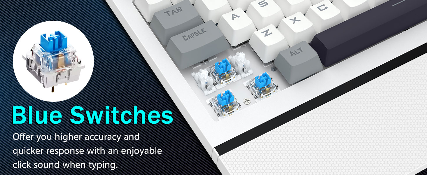 【正確なタイピングのための反応性の高い青いスイッチ】当社の PC キーボードは、カチッという音のする青いスイッチを備えており、驚くほど速い応答時間と驚くべき精度を実現します。キーストロークごとに満足のいくクリック音が生成され、タイピング体験が向上します。より深いキーストローク、より強力なフィードバック、より広いキー間隔により、タイピングがより正確になるだけでなく、はるかに快適になります。 「カチッ」という触感が好きな人には、当社のキーボードが最適です。