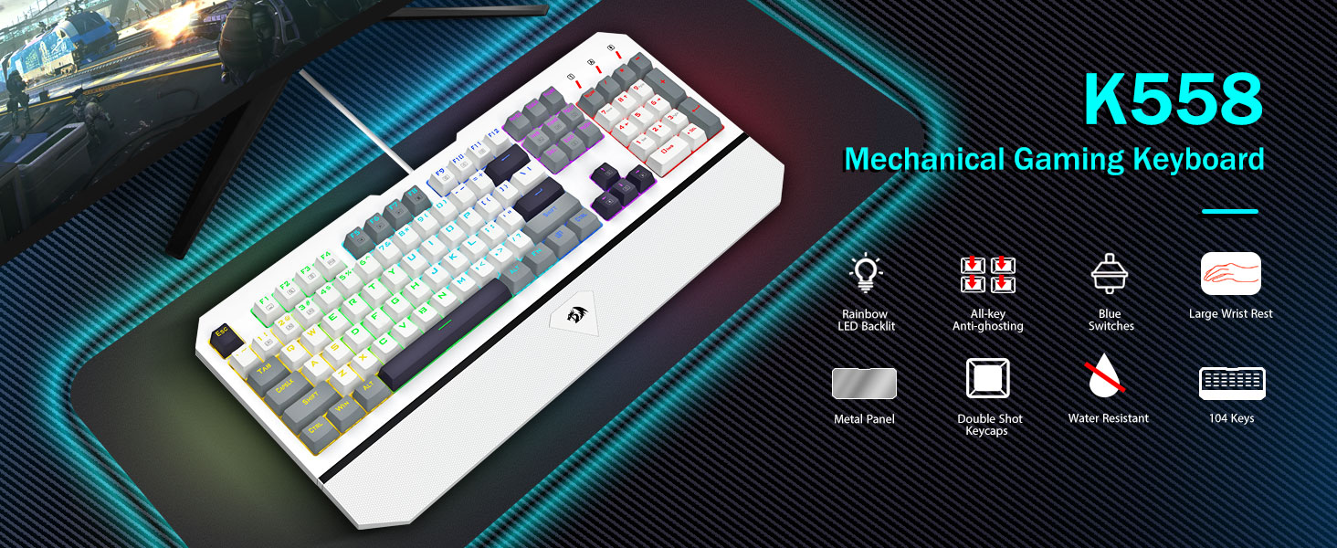 【100%アンチゴースト&11個のマルチメディアショートカット】100% アンチゴースト技術により、どんなに速く入力してもすべてのキーを同時に登録できるため、シームレスなタイピングをお楽しみいただけます。 11 個のマルチメディア キー ショートカットを使用すると、電卓、メディア コントロール、音量調整などの機能にすばやくアクセスできます。テンキーを備えた K558 メカニカル ゲーミング キーボードは、生産性を向上させます。このキーボードはWindows 7/8/10/XP/VISTA/95/98/2000/MEおよびMac OS、Xboxなどと互換性があり、最大5,000万回のキーストロークの寿命を誇ります。