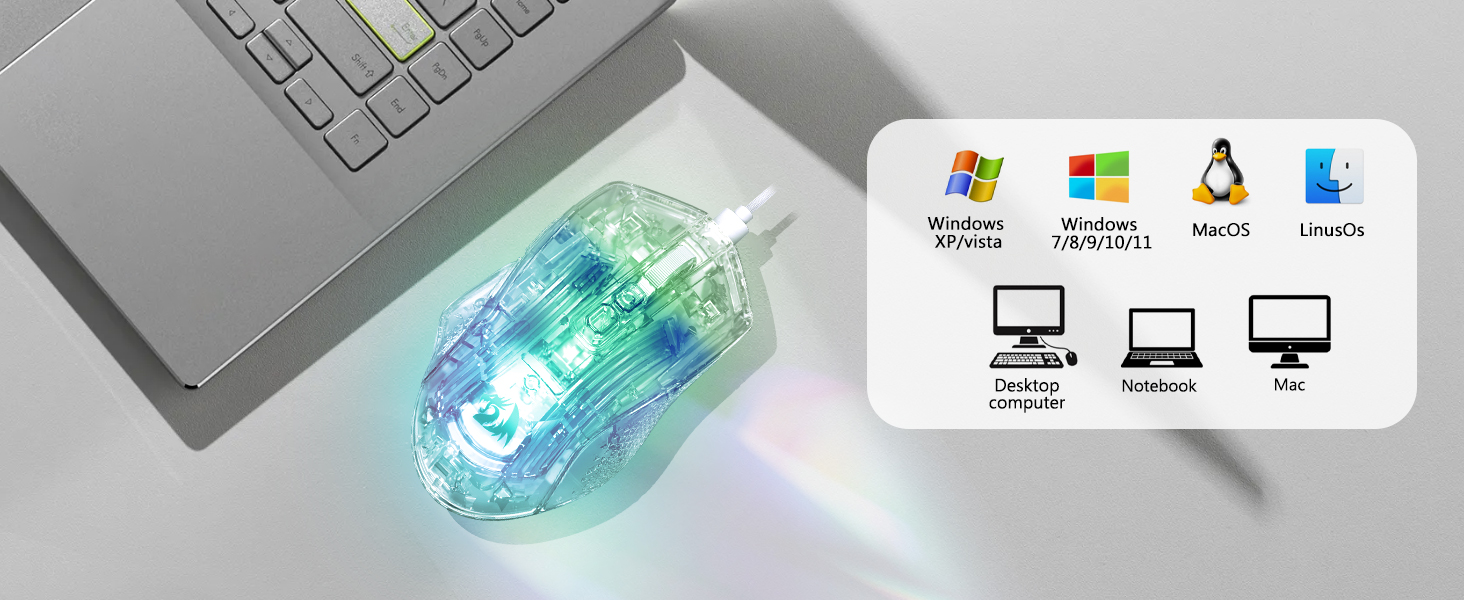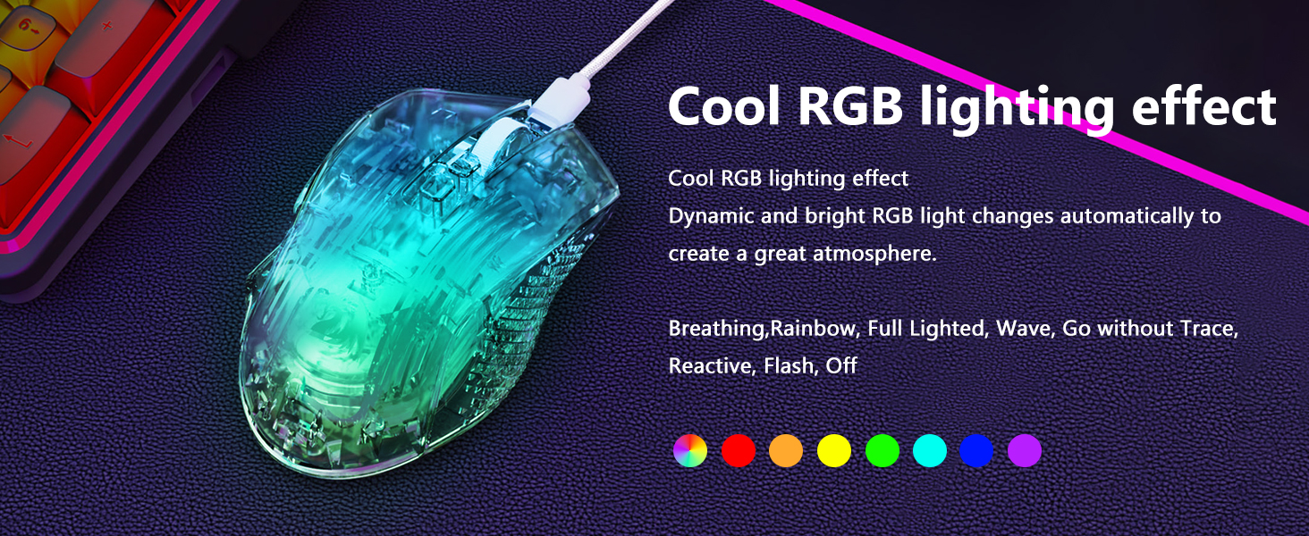 マウスには、パフォーマンスに影響を与えることなく視覚的な魅力を高める 8 つの RGB 照明効果が含まれています。ユーザーは、設定や個人の好みに合わせて照明モードを切り替えることができます。