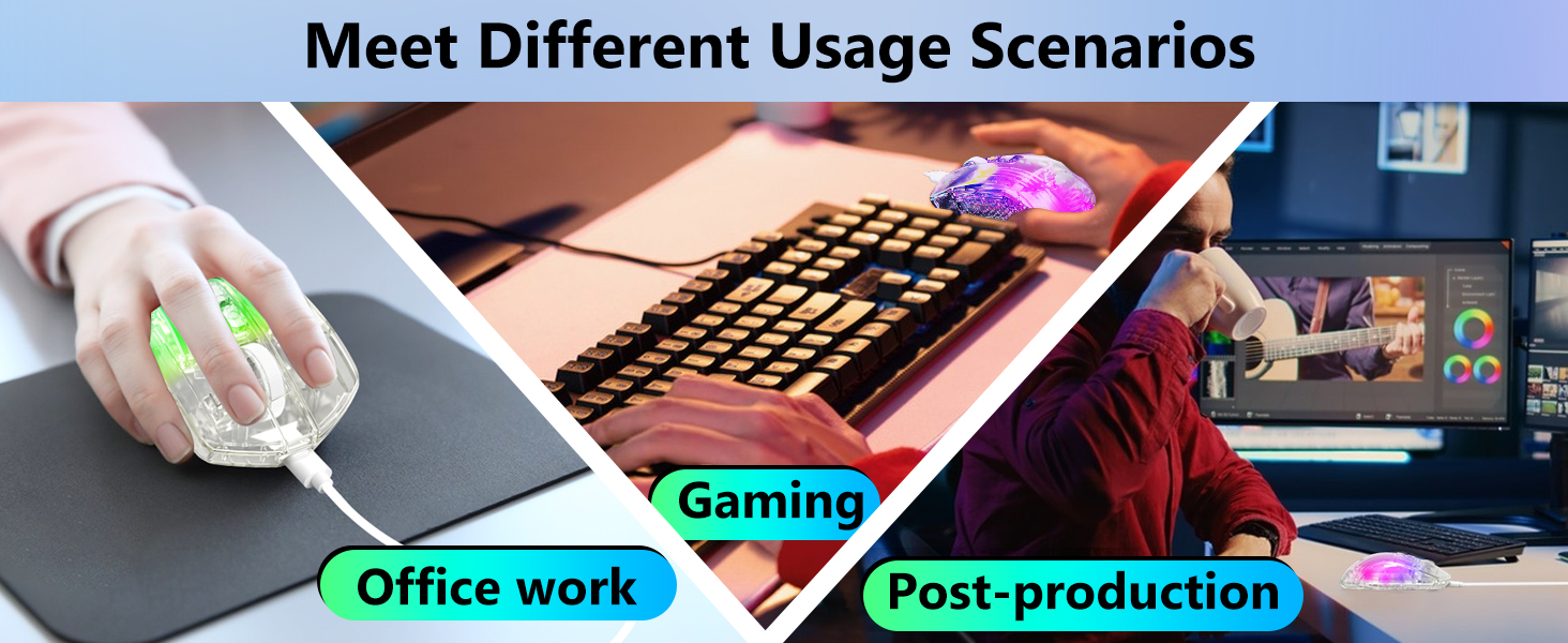 ゲーム以外にも、マウスはオフィス環境でも優れたパフォーマンスを発揮し、ドキュメントの編集、閲覧、データ管理などのタスクをサポートします。