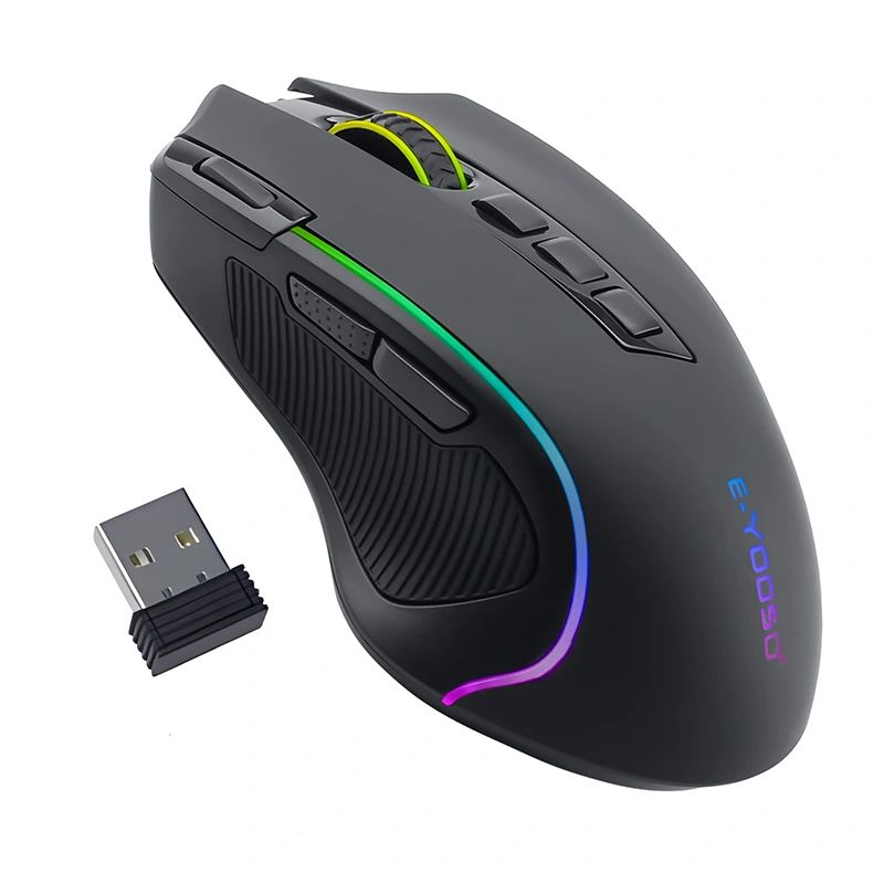 E-YOOSOワイヤレスゲーミングマウスには、8000 dpi光学センサーがあり、RGBバックライトが付いています。ワイヤレスゲーミングマウスRGB 9プログラム可能なボタンがあり、マクロレコーディングサイドボタン、ラピッドファイアボタンがあり、ゲームを一歩速くします
